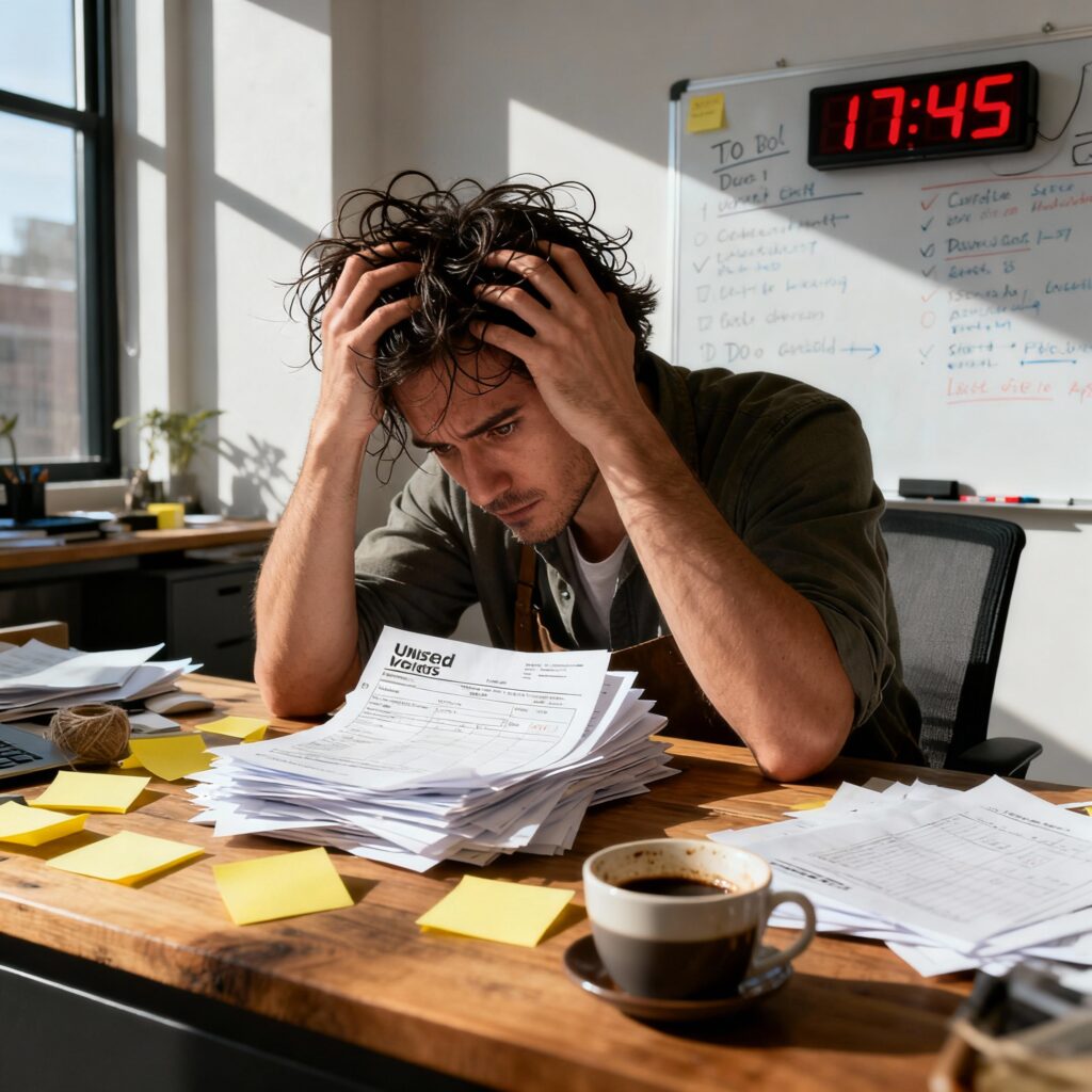 Anfragen beantworten, Zettel ordnen, Rechnungen schreiben, Kontrollen. Die echte Handwerks-Arbeit bleibt auf der Strecke. -